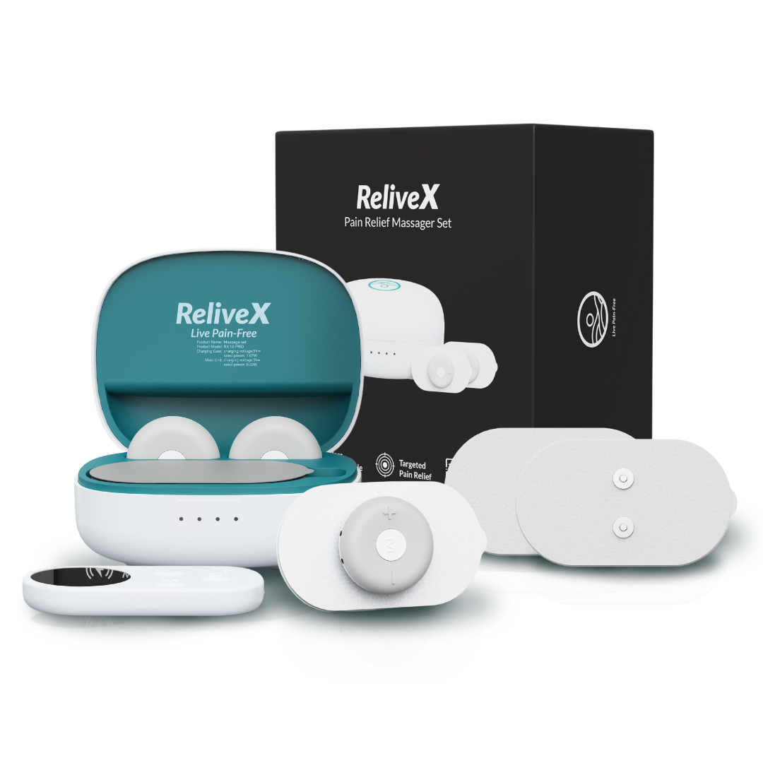 De ReliveX™ Massageset is compact, draadloos en effectiever. In 15 minuten per dag voel je al verschil.